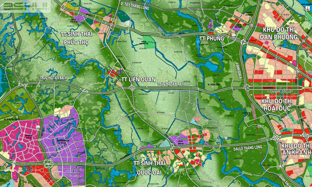 Bên cạnh các đô thị vệ tinh, xây dựng các thị trấn theo mô hình đô thị sinh thái mật độ thấp, từ các thị trấn huyện lỵ hiện hữu như Phùng, Tây Đằng, Liên Quan, Kim Bài, Vân Đình, Đại Nghĩa, Thường Tín, Phúc Thọ, Quốc Oai, Chúc Sơn và các thị trấn mới.
